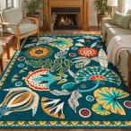 【並行輸入品】Joydeco エジプト フローラル ボーホー ラージエリアラグ リビングルーム 保育園用 洗濯可能 ダークグリーン ベッドルーム