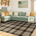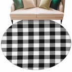 【並行輸入品】ラウンドエリアラグ 8フィート ブラック バッファロー格子柄 フロアカーペット 屋内 フロアエリアマット 防汚マット サークルラグ