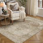 【並行輸入品】WondRg 4x6 ベージュ 洗える ヴィンテージ エリアラグ リビングルーム 寝室 ノンスリップ アンティーク調 トラディショ