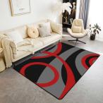 【並行輸入品】ジオメトリック エリアラグ 3x5 モダン 抽象アート リビングルーム ラグ 寝室 ホームデコレーション レッド ブラック グレー
