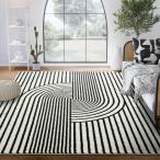 【並行輸入品】Abani Nuevo Collection エリアラグ ミッドセンチュリーブラックとホワイトのアーチノットデザイン 4フ