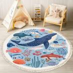 【並行輸入品】ラウンドラグ 漫画 海 水中 動物 タツノオトシゴ クジラ 魚 海洋 動物 ボーホー エリアラグ リネンとコットン カーペット 瞑