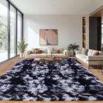 【並行輸入品】8x10 エリアラグ リビングルーム 寝室用 ウルトラソフト ふわふわ 黒と白 大きなラグ カーペット 寝室用 アップグレード ノ