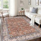 【並行輸入品】KUTA 5x7 エリアラグ、ビンテージテラコッタ洗えるラグ リビングルーム用 超薄型ソフトノンスリッププリント アンティーク調