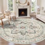 【並行輸入品】Tortania 8フィート ラウンド エリアラグ リビングルーム ラグ 洗濯可能 ボーホー ラグ ヴィンテージ オリエンタル