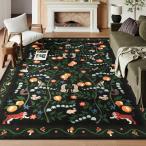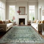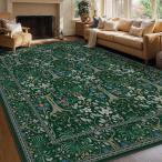 【並行輸入品】ダークエメラルドグリーン エリアラグ 8x10 リビングルーム用、洗える フェイクウール ムーディーフローラル ボーホー ヴィンテ