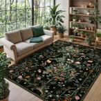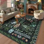【並行輸入品】Zealude フローラル ブラック 8x10 エリアラグ 寝室用 滑り止め 洗濯可能 リビングルーム ダイニングルーム ラグ テ