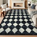 【並行輸入品】Lahome 格子柄 洗える 8 x 10 エリアラグ リビングルーム用 ブラック 寝室ラグ 8x10 ベッド下、幾何学模様 トレ