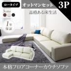 (タイムセール中) ローソファ おしゃれ 3人掛けソファー カウチソファー・オットマンセット