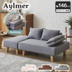 カウチソファ ライナス オットマン付き クッション付き 幅146cm ソファベッド 2人掛けソファ ローソファ ファブリックレザーソファ Linus