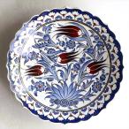 トルコ手書き絵皿 直径25cm ミュージアムピース オットマンクラシック チューリップ