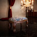 椅子 チェア アンティーク イタリア製 エレガント 高級感 スツール 木製 オットマン おしゃれ ブルー 猫脚 金華山織り 天然木 完成品 いす イス 座面高50cm