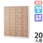 設置無料 ロッカー 20人用 鍵なし 木目 シューズロッカー スチールロッカー シューズボックス 下駄箱 オフィス収納 二十人用 20人用ロッカー GLK-K20-NT