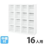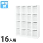 法人限定 オープンシューズボックス ライオン事務器 4列4段 16人用 長ぐつ用 中棚付 幅1200×奥行380mm×高さ1600mm ホワイト オフィスロッカー OKBL44-16