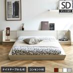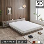 Platform Bed ローベッド セミダブル ナイトテーブルLR(左右) 20cm厚 ポケットコイルマットレス付 棚付きコンセント2口 木製ベッド