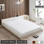 Platform Bed ローベッド シングル ナイトテーブルL(左) 25cm厚 ポケットコイルマットレス付 棚付きコンセント2口 木製ベッド フロアベッド