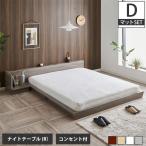 Platform Bed ローベッド ダブル ナイトテーブルR(右) 15cm厚 ポケットコイルマットレス付 棚付きコンセント2口 木製ベッド フロアベッド