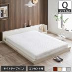 Platform Bed ローベッド クイーン ナイトテーブルL(左) 15cm厚 ポケットコイルマットレス付 棚付きコンセント2口 木製ベッド フロアベッド