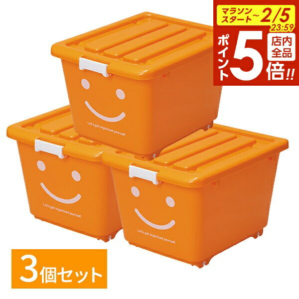 【2/5 全品ポイント5倍】収納ケース ハッピーケース ショート オレンジ 3個セット | 奥行50cm プラスチック 子供部屋