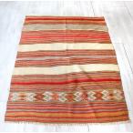 オールドキリム コンヤ 132x95cm 赤とオレンジのボーダー ジジム