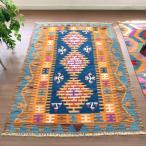 色にこだわるワンランク上のカイセリキリム 175x127cm ブルー&オレンジ