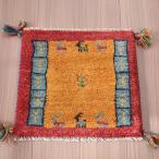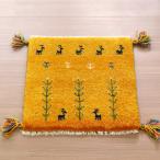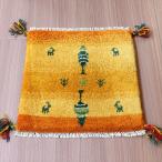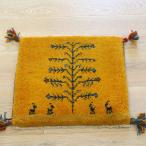 ギャッベ 座布団サイズ 40x41cm イエロー 動物と生命の木 イラン産手織りギャッベ