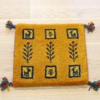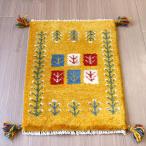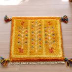 ギャッベ イラン産手織り 座布団サイズ 40x44cm イエロー 枝葉を伸ばす生命の木