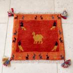 ギャッベ 座布団サイズ 39x40cm オレンジ イエロー イラン産手織りギャッベ