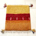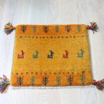 ギャッベ イラン産手織り 座布団サイズ 38x43cm イエローオレンジ