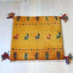 ギャッベ イラン産手織り 座布団サイズ 40x41cm イエローオレンジ 生命の木と動物モチーフ