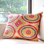 アトラス(イカット 絣) クッションカバー ウズベキスタン 横長クッション シルク ベルベット 50x39cm オレンジ&イエロー