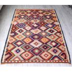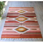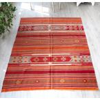 手織りキリム トルコ カイセリ産 221x153cm リビングサイズ ローズピンクとオレンジ サンドゥック
