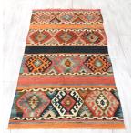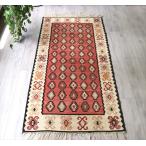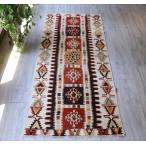 【10%OFF!楽天スーパーSALE限定!】トライバルラグ 約65cm x 285cm レッド ブルー オレンジ 赤色 青色 ウール 羊毛 ランナー 廊下敷き 細長 幾何学模様 ホットカーペット対応 床暖房対応 オールシーズン 一年中 おしゃれ カッコイイ さっぱり 一点もの 現品限り