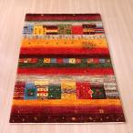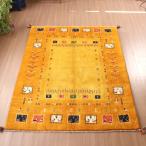ギャッベ イラン産手織りラグ 142x100cm オレンジ イエロー 糸杉の