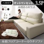 (タイムセール中) ローソファー&オットマンセット 3.5人掛け ハイタイプ おしゃれ レザーカウチソファ l字 コーナーソファー
