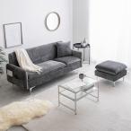 ソファー 2人掛け コーナー ベロア生地 おしゃれ アーバンモダン 高級感 カウチ ロータイプ 二人掛け オットマン付き3点セット