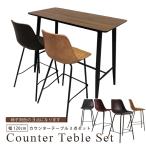 カウンター3点セット 幅120cm カウンターテーブル バーテーブル カウンターチェア バーチェア 木製 アイアン バイキャスト 合皮レザー カフェ風 ヴィンテージ