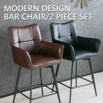 カウンターチェア バーチェア 2脚 セット 背もたれ付き 肘付き 回転式 PU レザー ブラック ブラウン 茶 黒モダン ヴィンテージ カフェ