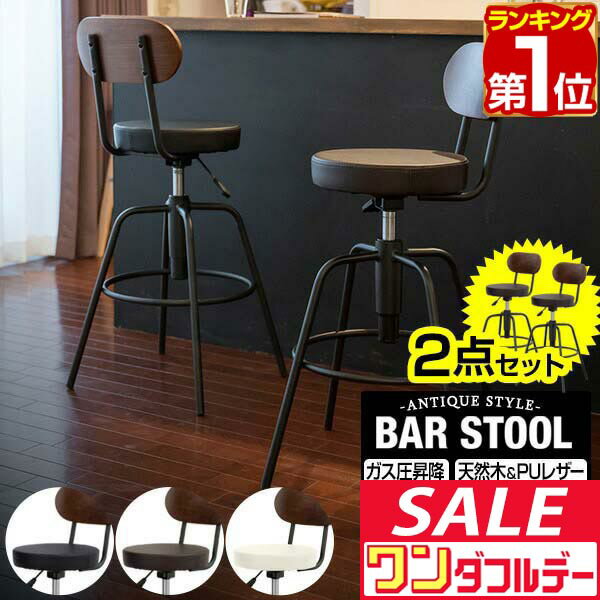 カウンターチェア 椅子 バースツール 2脚セット 昇降式 バーチェア 背もたれ 高さ調節 キッチン チェア 昇降 いす カウンターチェアー 1年保証 送料無料