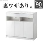 ラック 棚 扉付き キャビネット 白 鏡面 シンプル クール スタイリッシュ サイドボード ルーター収納 ホワイト 幅90cm