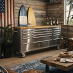 ステンレス ツールキャビネット ワゴン 天然木天板 幅199cm 大容量 引き出し収納 キャスター付き 鍵付き キッチンカウンター ガレージ収納 店舗什器 DDK