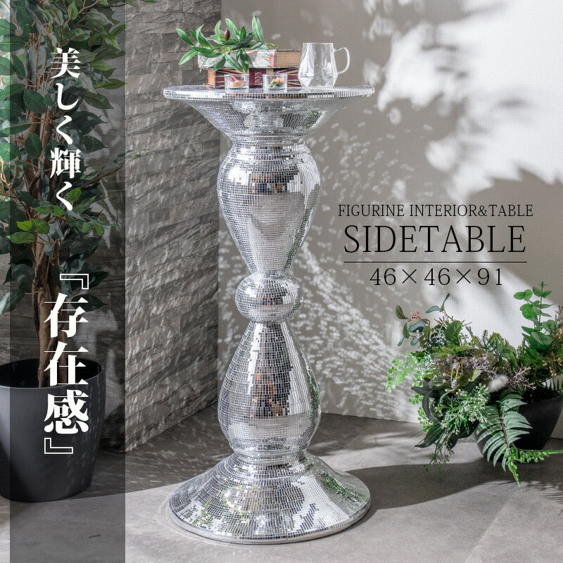5%offクーポン配布中 サイドテーブル おしゃれ オーナメント ミラー モニュメント 飾り台 ゴージャス エレガント チェス駒風 円形 丸テーブル 異世界風 モダン 置物 カウンターテーブル シルバー調 きれい ラウンドテーブル