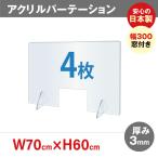 [4枚] [日本製]透明アクリルパーテーション W700*H600mm 窓付き 対面式スクリーン デスク用仕切り板 コロナウイルス jap-r7060-m30-4set爆買