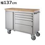ツールキャビネット 幅137cm ステンレス製 木天板 キャスター付 ( キャビネット ワゴン キッチンワゴン )