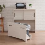 カウンター下収納 幅80 2分別ダストボックス付き キャビネット ホワイトウォッシュ 収納家具 キッチンワゴン キャスター付き