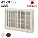 カウンター下収納 幅120.5cm ガラス引き戸 和モダン調 日本製 完成品 ( カウンター下 天然木 桐 リビング キッチン収納 収納棚 )