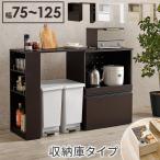 伸縮 キッチンカウンター 食器棚 収納 下 カウンターテーブル 幅75〜125cm 2口コンセント付