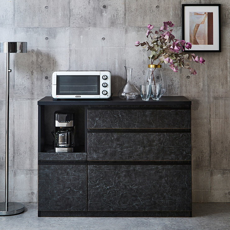 ★55%OFF★ 食器棚 ロータイプ キッチンカウンター 収納 完成品 間仕切り レンジ台 アンサンブル 幅119.7cm 大理石調 くすみ グレー アースカラー ストーン柄 ブラック ホワイト 日本製 120cm幅 一人暮らし 背面化粧仕上げ おしゃれ 大川家具