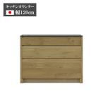 キッチンカウンター 幅120cm キッチン収納 国産 カウンター レンジ台 無垢材 フィオレストーン天板 日本製 引出し