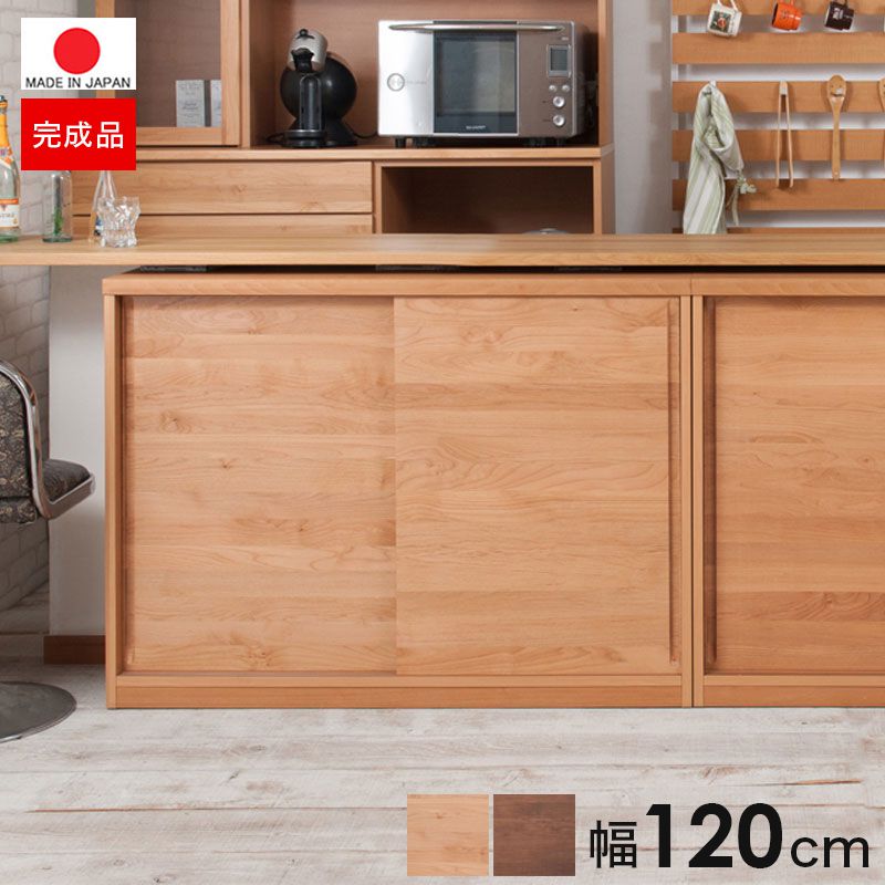 カウンター下収納 引き戸 完成品 ロータイプ 薄型 幅120 奥行30 高さ90 日本製 木製 大容量 食器棚 収納 キャビネット おしゃれ キッチンボード キッチン収納 スリム サイドボード リビングボード キッチン 間仕切り 食器収納 キッチンカウンター 木目 組み立て不要